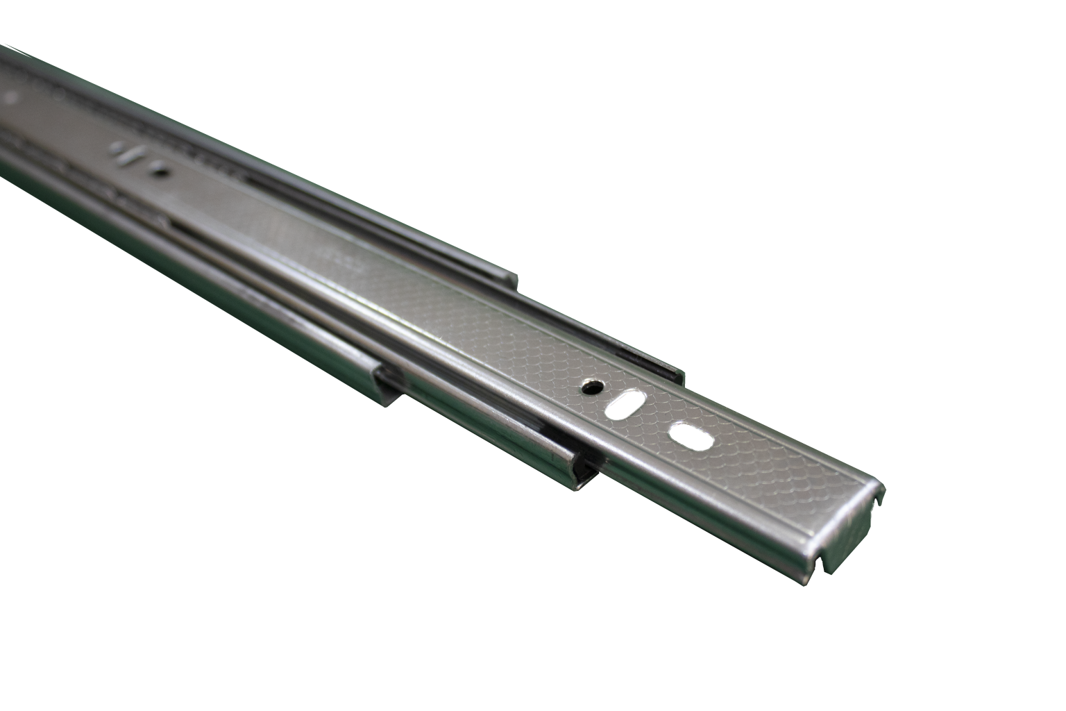 این ریل دارای طراحی استاندارد و سادهای است که به راحتی روی بدنه کابینت یا کمد نصب میشود و امکان باز و بسته شدن کامل کشو را فراهم میکند.